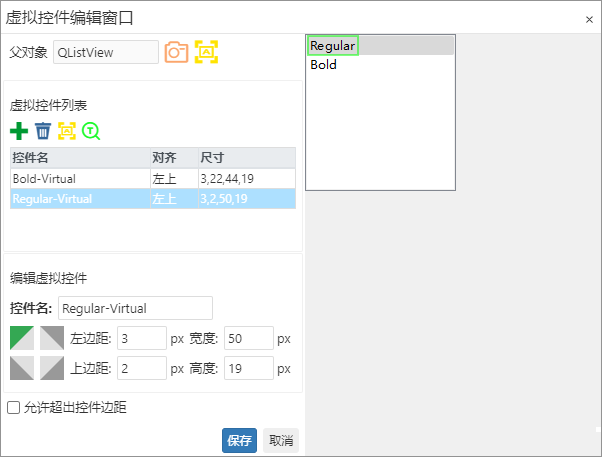 If you need to edit multiple virtual controls at once, you can click "Edit Virtual Control" on the control screenshot page to open the virtual control editing window. In this window, you can batch add, delete, or adjust virtual controls, and set properties such as name and alignment for each control, facilitating subsequent script calls and interface adaptation.