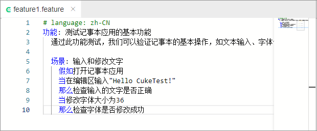 Feature 文件创建完成后,您可以选择 文本模式 或 可视化模式 来编写测试内容。